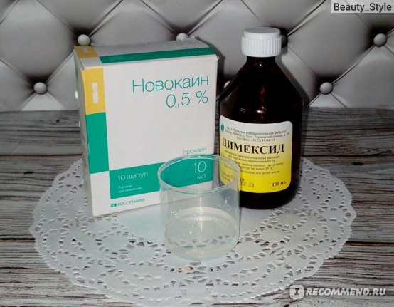 При компрессах очень часто используются такие препараты, как димексид и новокаин. В тандеме они хорошо переносят боль.