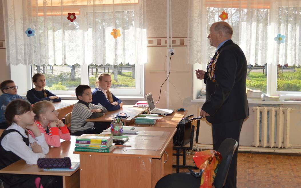 18 апреля 2016 года в нашей школе прошел урок памяти и мужества, который провели ветераны – участники ликвидации последствий аварии: Скородумов Юрий Семенович, Сущинский Альберт Константинович, Павлов Геннадий Васильевич и подводник атомной подводной лодки —  Батунин Александр Петрович.