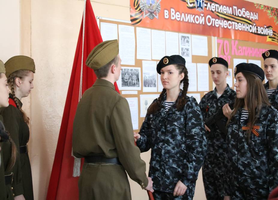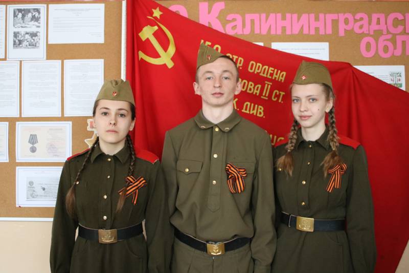 На торжественной линейке присутствовали ветераны Великой Отечественной войны и военной службы, заместитель главы администрации МО «Светловский городской окргу» по социальным вопросам, начальник отдела образования, культуры и спорта Мужиченко Л.В., обучающиеся школы, дошкольники и учителя. В торжественной обстановке копия Знамя Победы было передано знаменной группой МБОУ СОШ №1. Обучающийся 10а класса Пахолков Никита произнес клятву и копия Знамени Победы заняла почетное место в музейном уголке школы. В течение 3 дней Знамя находилось в стенах нашей школы.